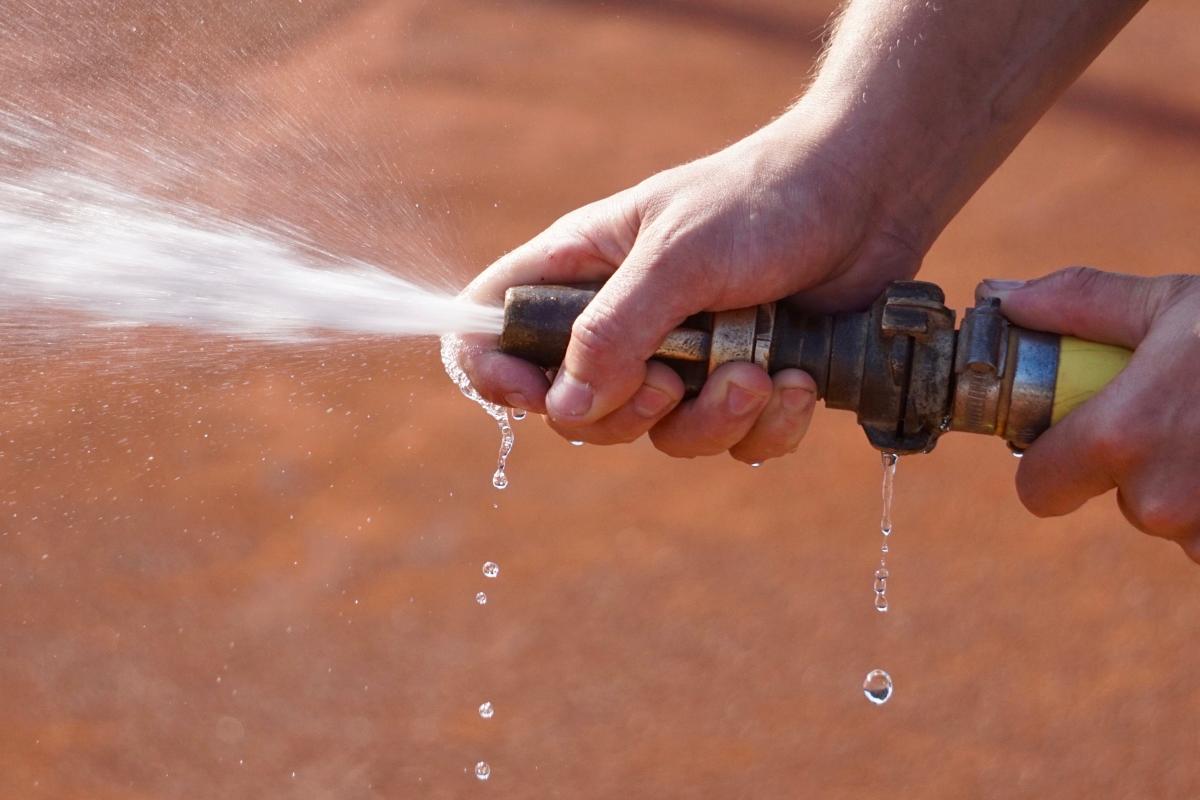 De tennisbanen waren kurkdroog tijdens de mooie zomerdagen en konden duidelijk wat water gebruiken.