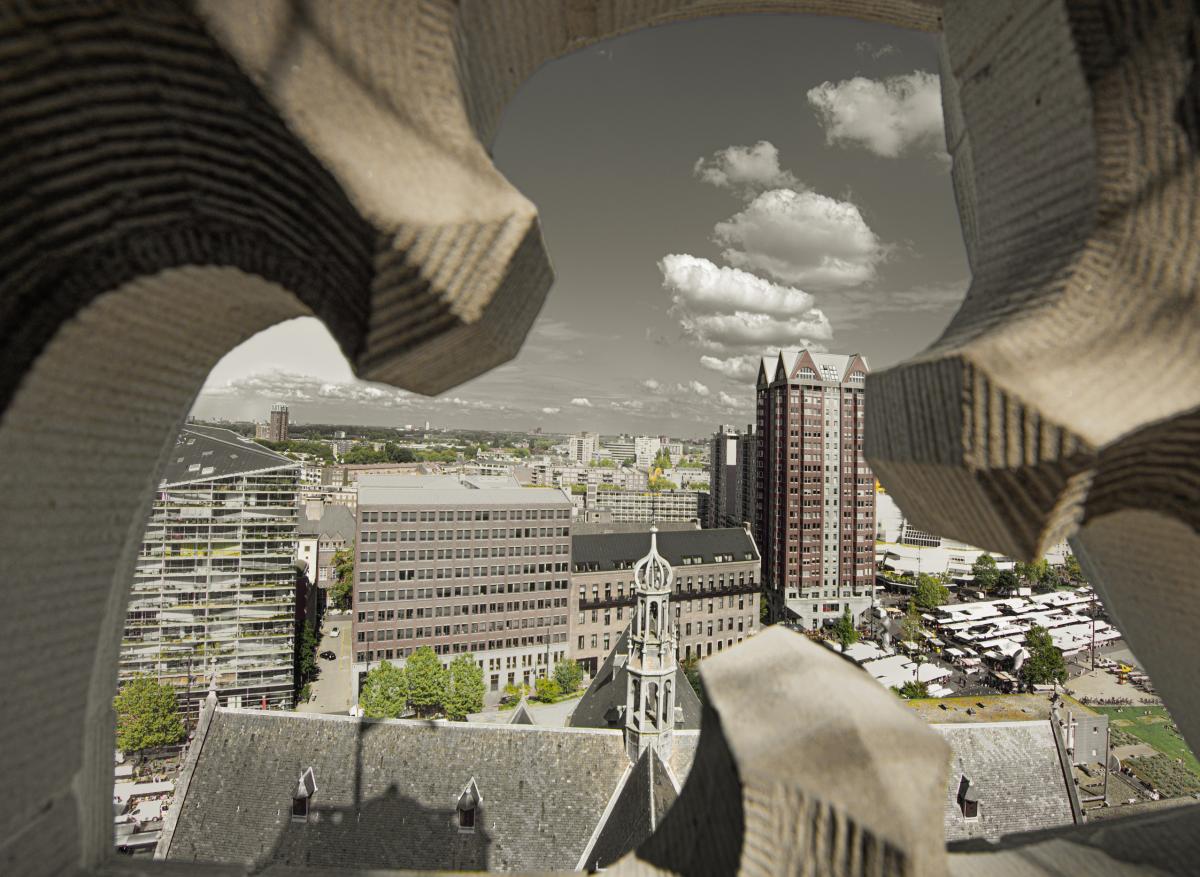 Doorkijk op de Rotterdamse Markt. Anaf de Laurenskerk