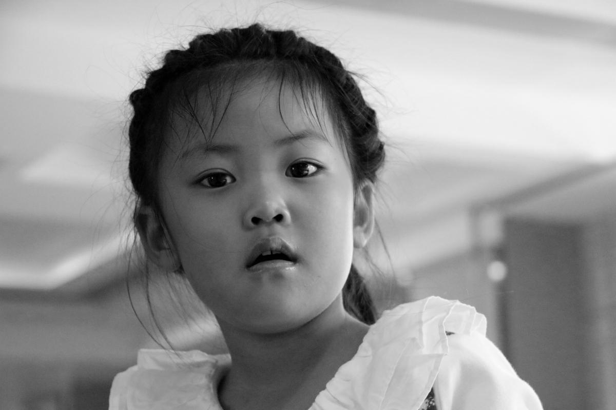 Ik maakte deze foto op een bruiloft in China. Haar blik is zo krachtig voor zo'n klein meisje. Hoe zal haar toekomst eruit zien?