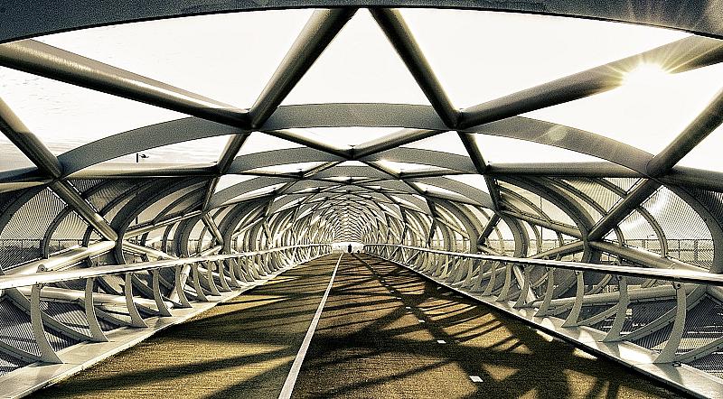 De Netkous te Barendrecht Zuid-Holland een fietsbrug over de A15. Genomen binnen 1 minuut want meer had ik niet, het licht was erg hard en mooi die middag.