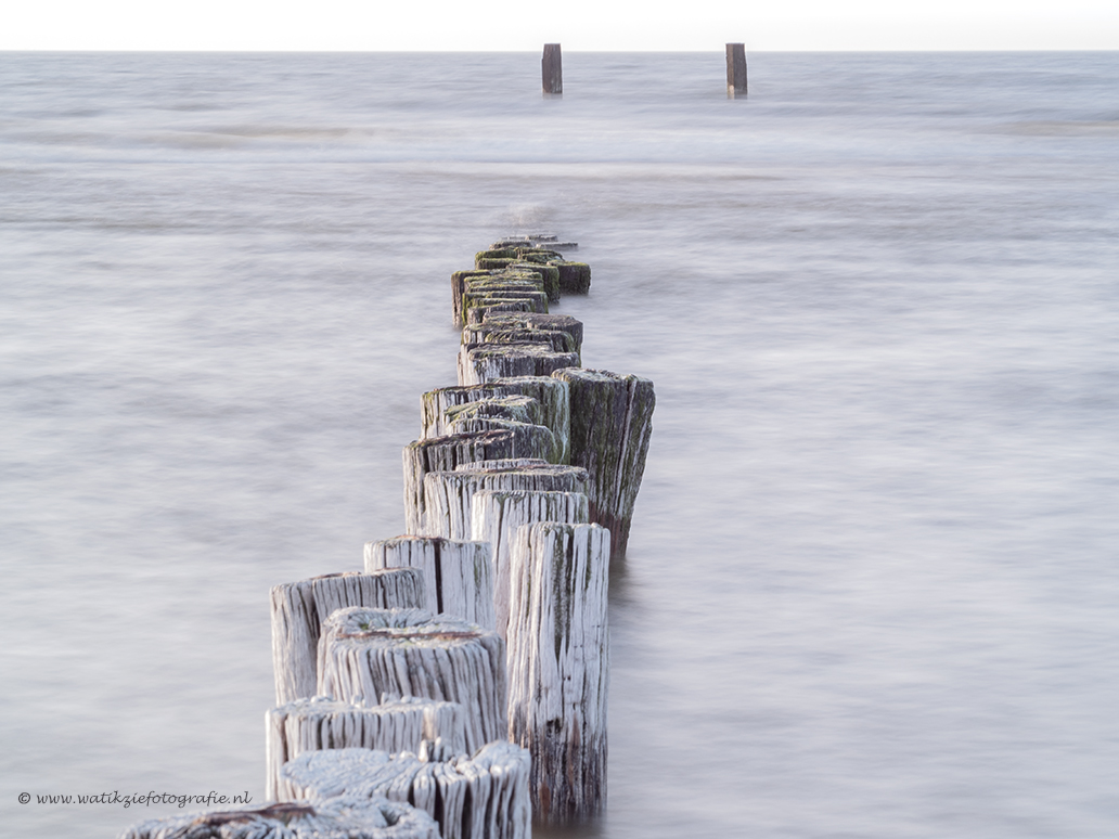 Een keer naar zee.....in de vroege avond......een harde wind met verder saai grijs weer......vandaar dat ik gespeeld heb met wat langere sluitertijd, en het plaatsen van de horizon heel hoog in beeld.