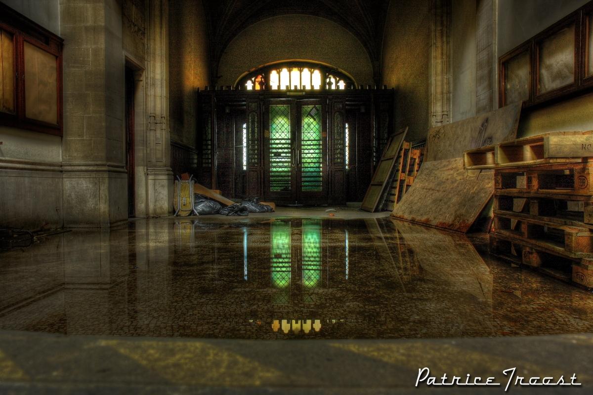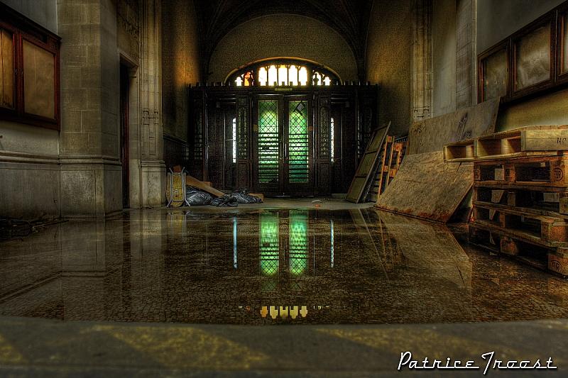 Het enige mooie wat het gebouw nog rest is de aanwezigheid van het mooie kunsige glasinlood ramen, wat het gehele gebouw nog siert...