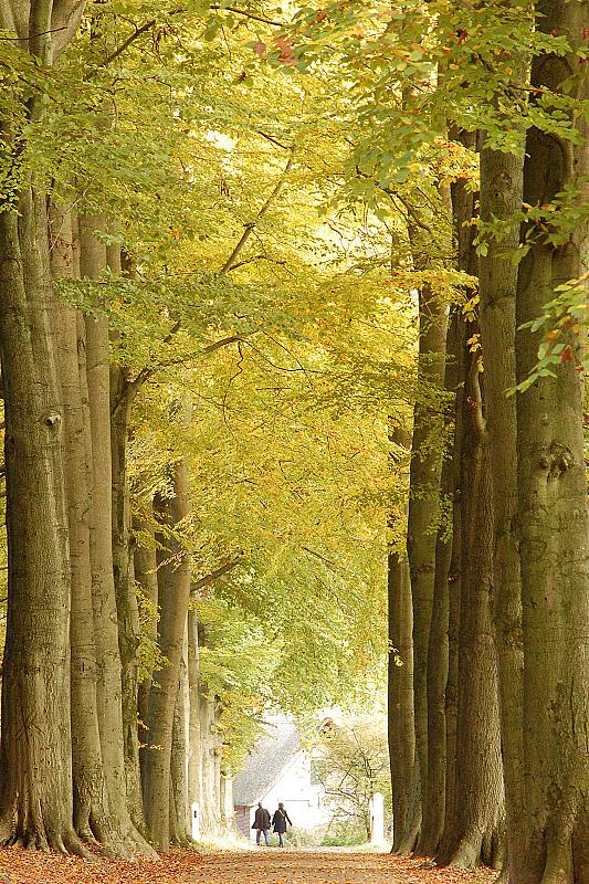 Mooi beukenlaantje op landgoed Heuven te Rheden in heerlijke zonnige herfstkleuren