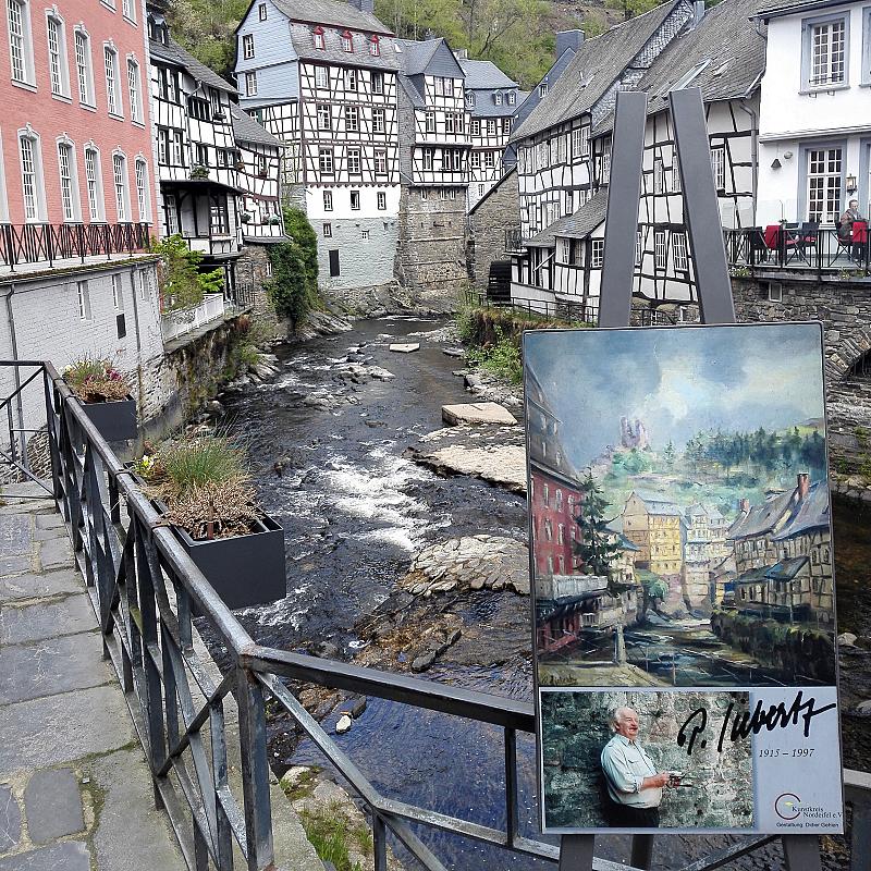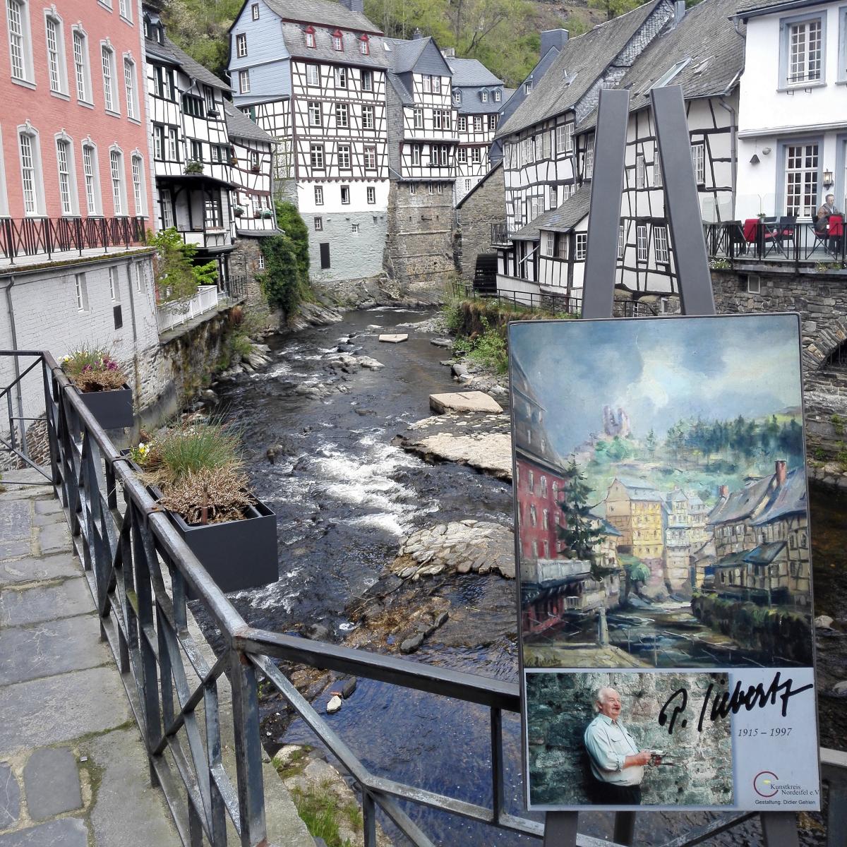 Er zijn huizen om de rivier heen gebouwd