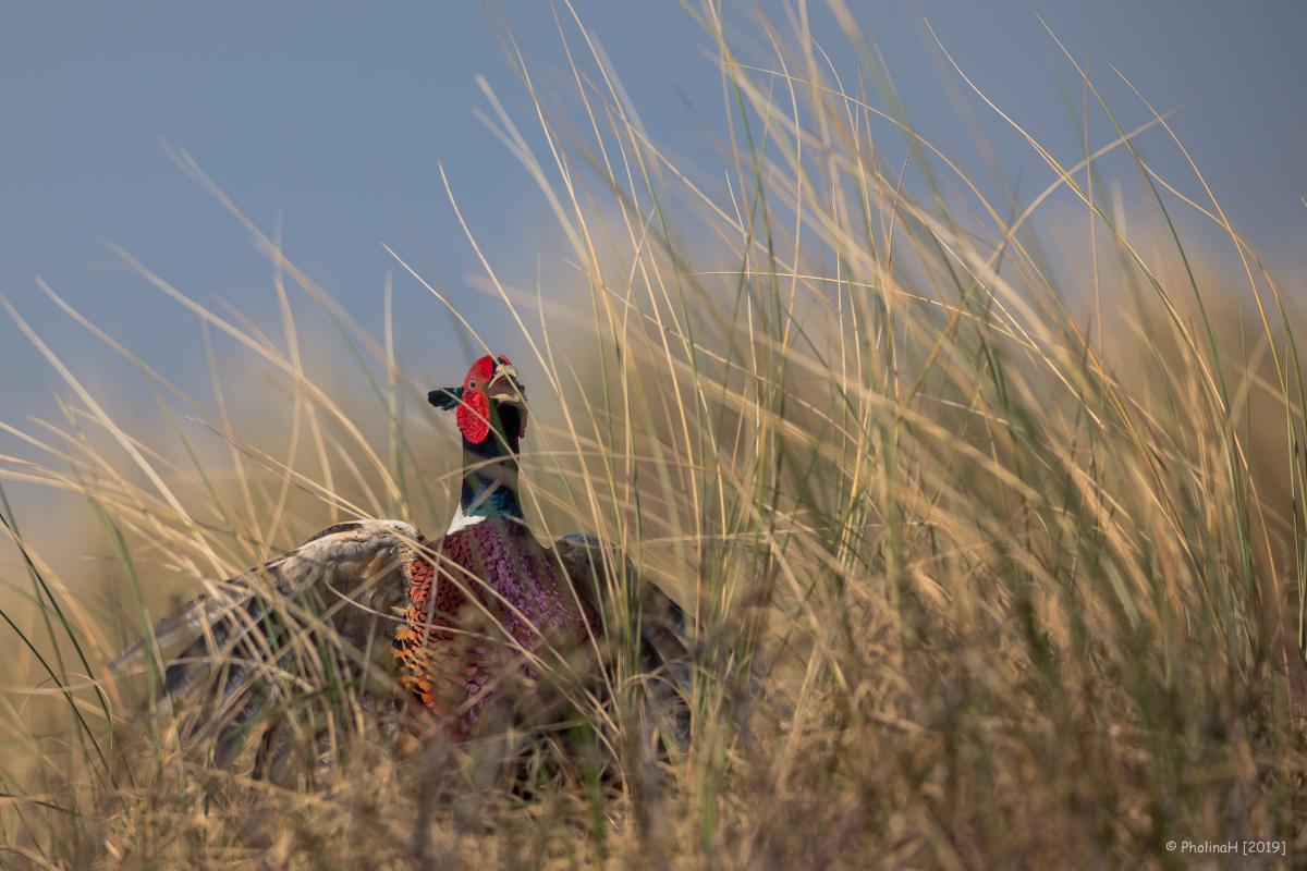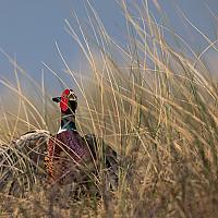 Luidruchtige fazanthaan in het duinlandschap van Texel
