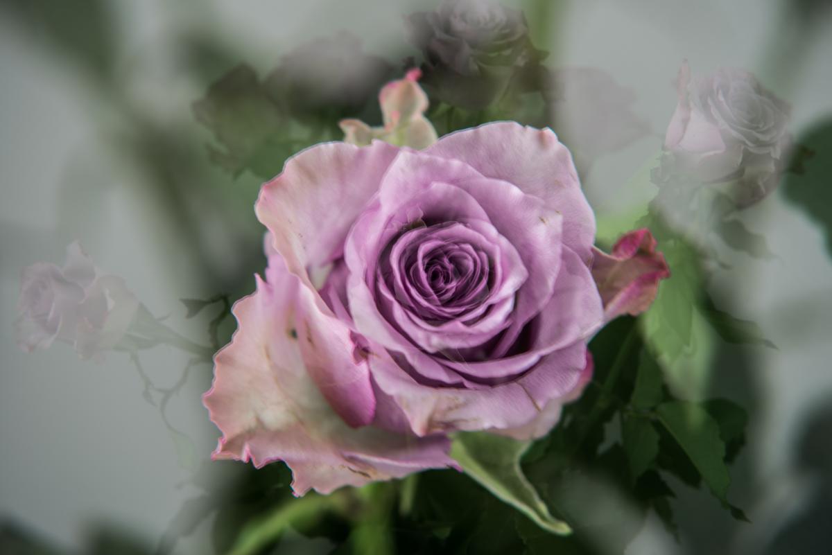 Om zo de rozen op achtergrond te vervagen. Instelling op 4 fotos