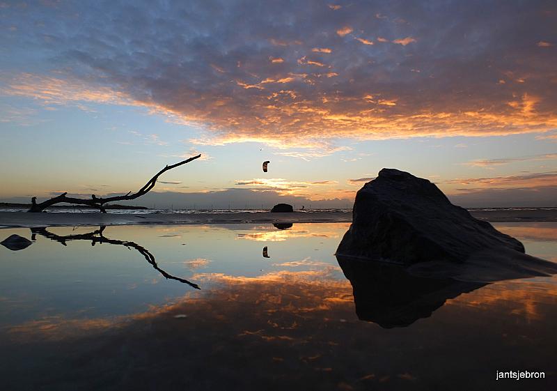de steen,de tak en de kitesurfer