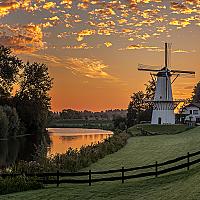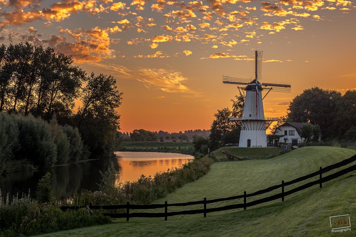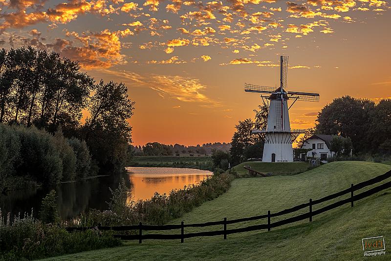 Zonsopkomst bij molen de Vlinder op de grens van Deil en Enspijk in de Betuwe