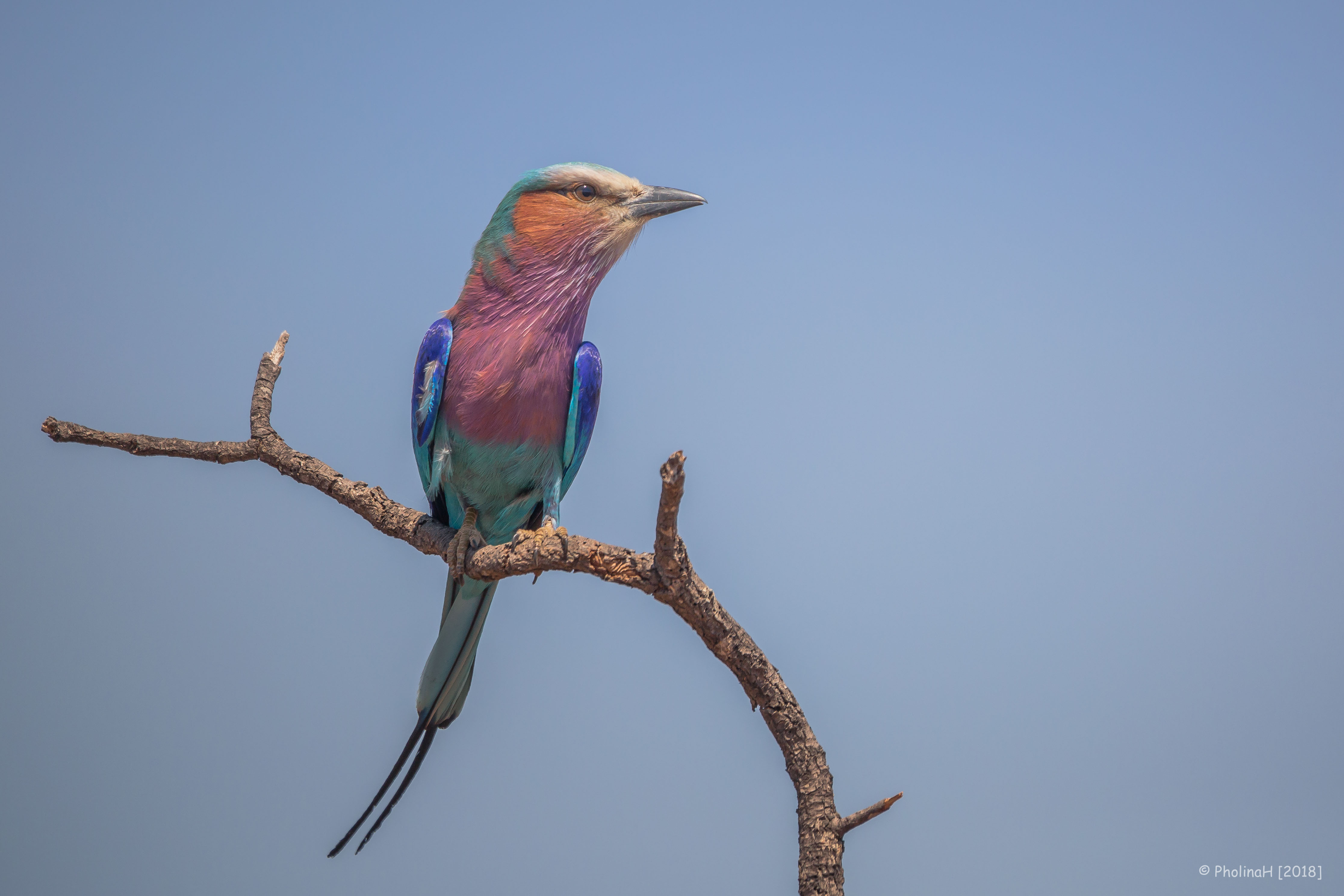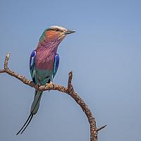 Lilac breasted roller oftewel de vorkstaartscharrelaar in het Kruger Park, Zuid Afrika