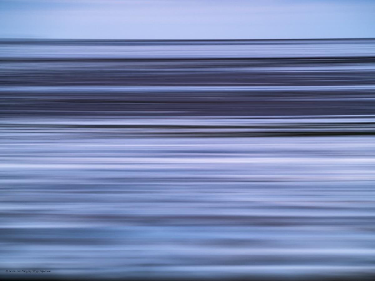 Deze keer heb ik geprobeerd zoveel mogelijk tinten blauw van de zee te vangen in een abstract beeld.