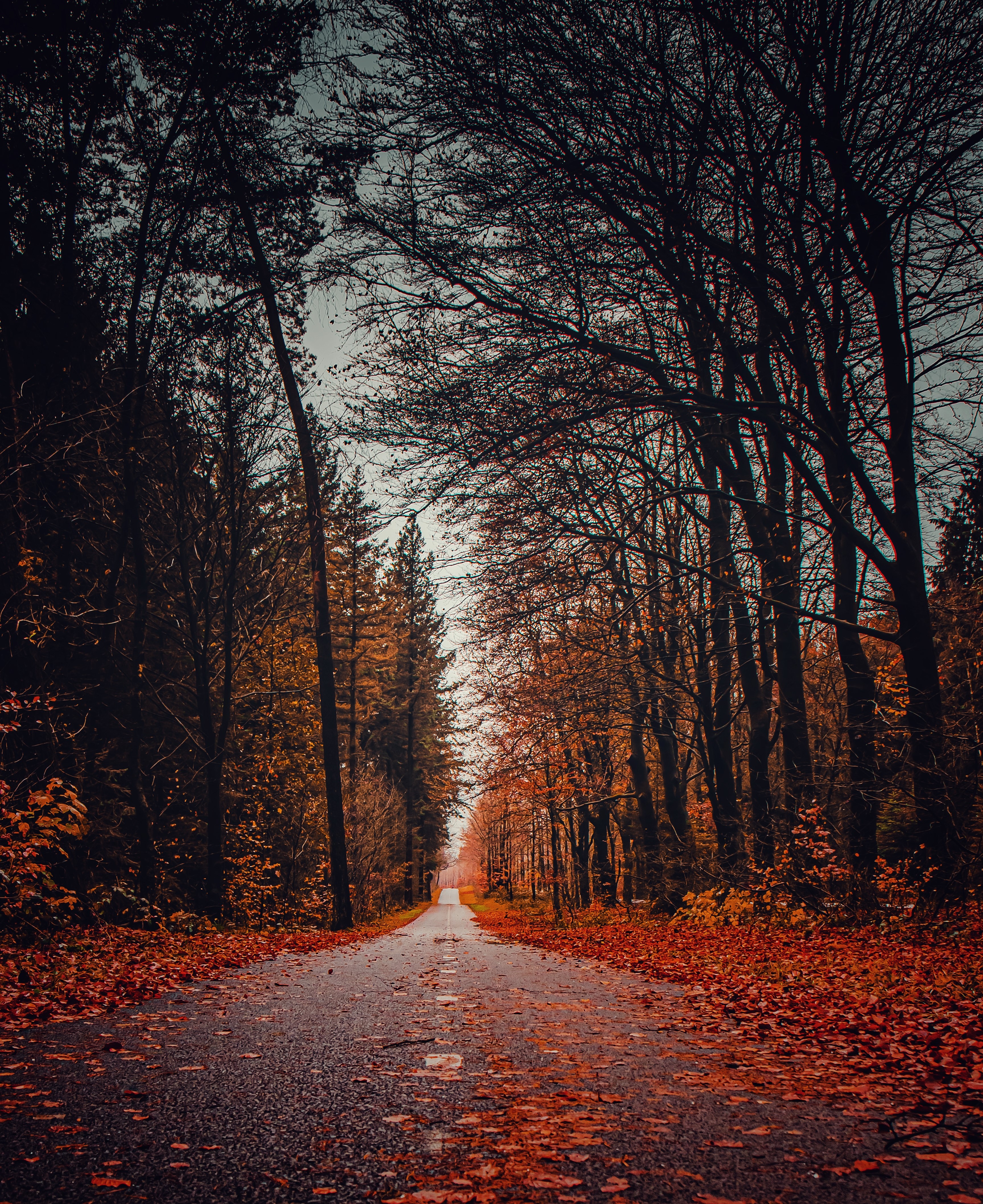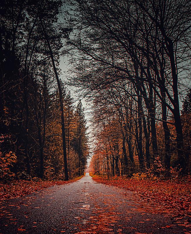 De weg van herfst naar winter.