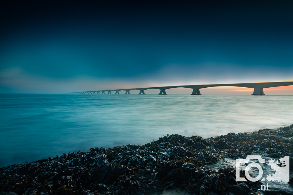 De Zeelandbrug in de provincie Zeeland, tijdens zonsopkomst