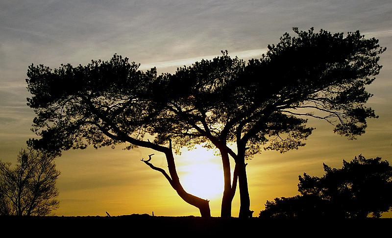 De zon gevangen in de boom