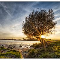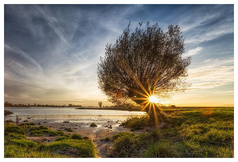 Ik was aan het wandelen bij de Lek rivier en toen zag ik dat de zon zo mooi langs deze boom ging.