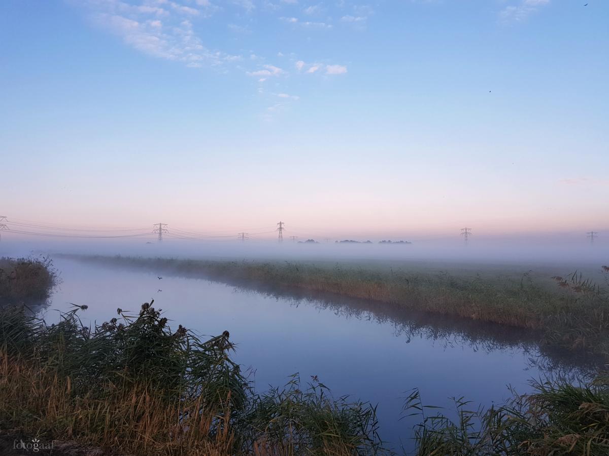 Vanochtend vroeg, de weilanden bedekt met een dikke laag mist.. net een mooie witte deken. Als je goed kijkt, lijkt ook het water stoom af te geven.