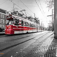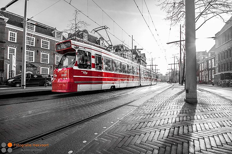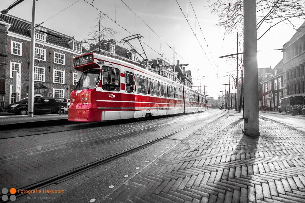 de fraaie rode trams in Den Haag