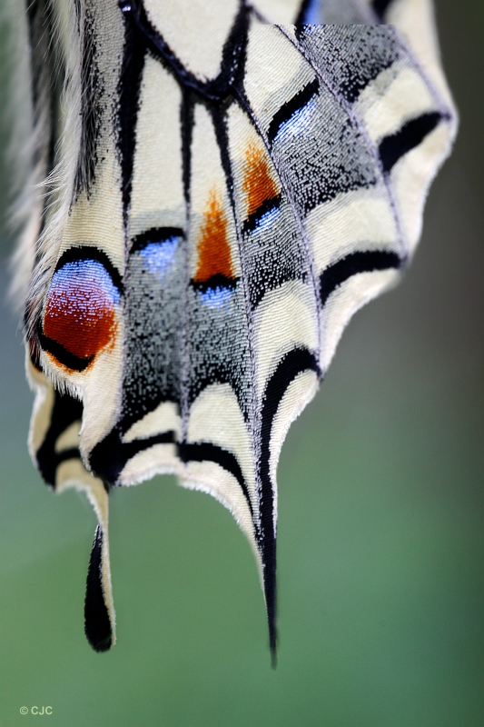 Een detail van de vleugel van een koninginnenpage.