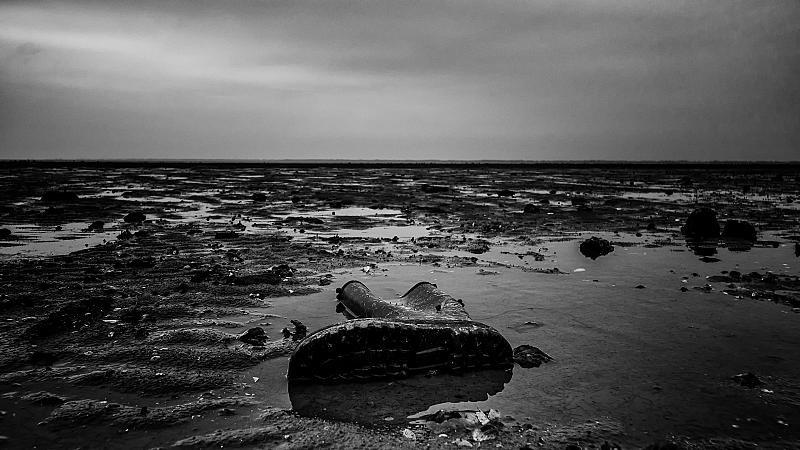 Achtergebleven laars op het wad...