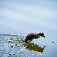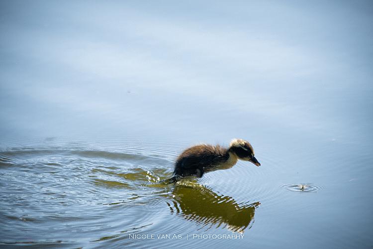 Niet wetende of de foto geslaagd zou zijn, was ik zo blij toen ik mijn foto groot op mijn scherm zag. In het water zag ik een klein vliegje/mug zelfs met fladderende vleugeltjes. Het pulletje dook er op af.