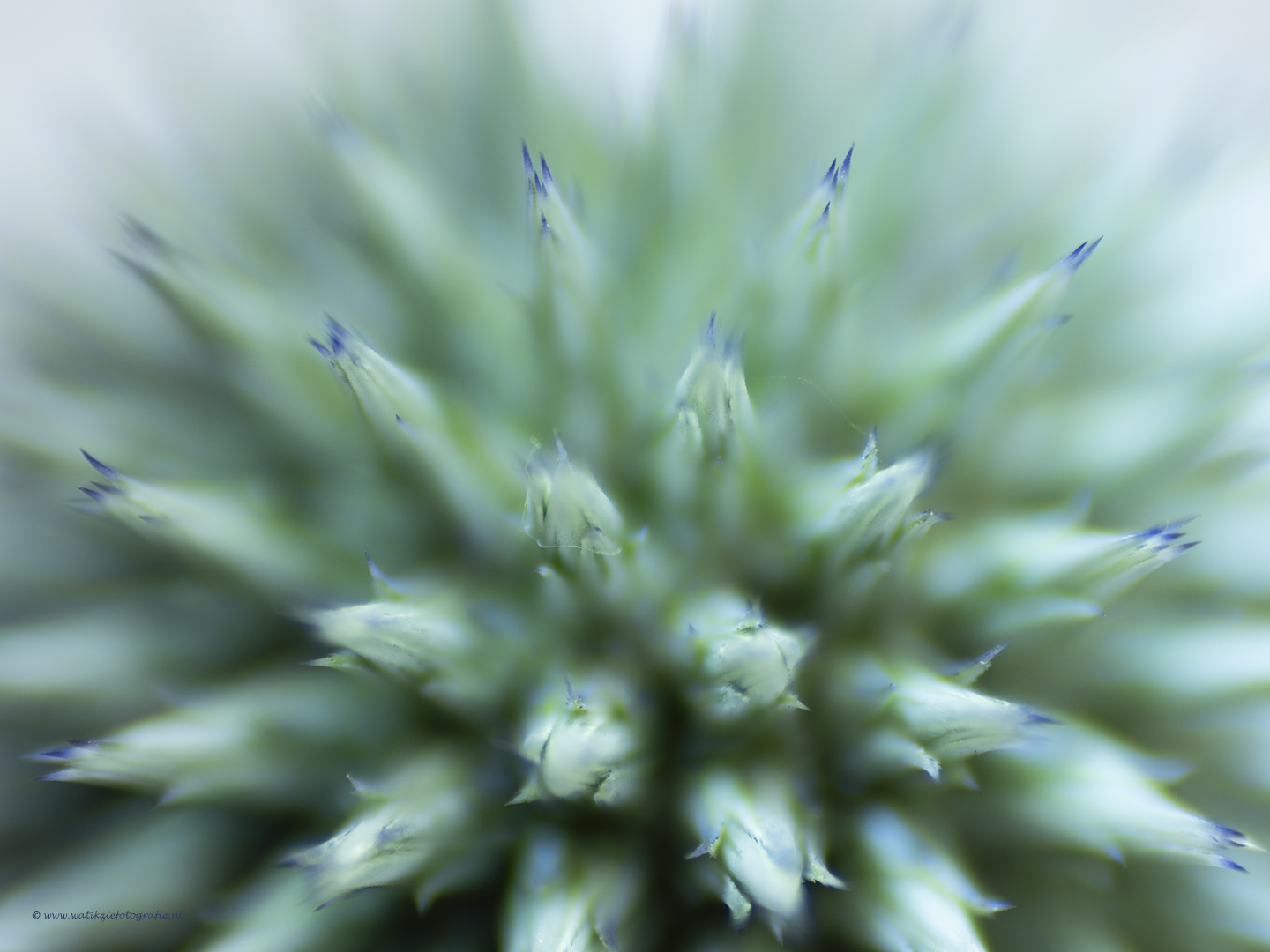 Een distel, gemaakt met de lensbaby Edge 80, de witbalans op 4000 Kelvin waardoor er een koele kleurstelling ontstaat, heel dicht op de bloem gefotografeerd!!