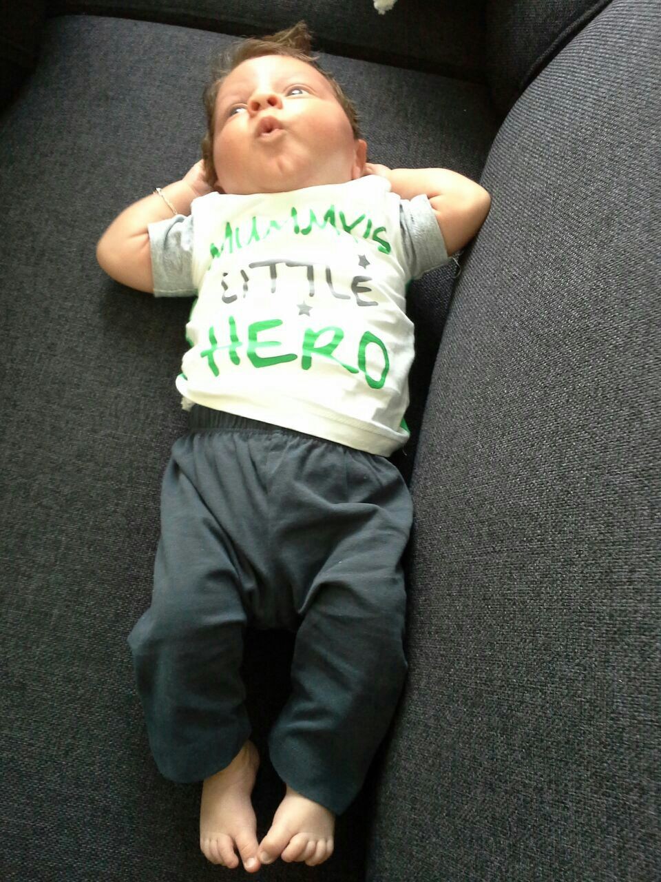 zoals het is, dit kleine mannetje is zijn luier aan het vullen, haha lijkt net of ie ligt te fluiten.
