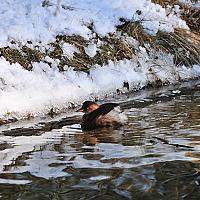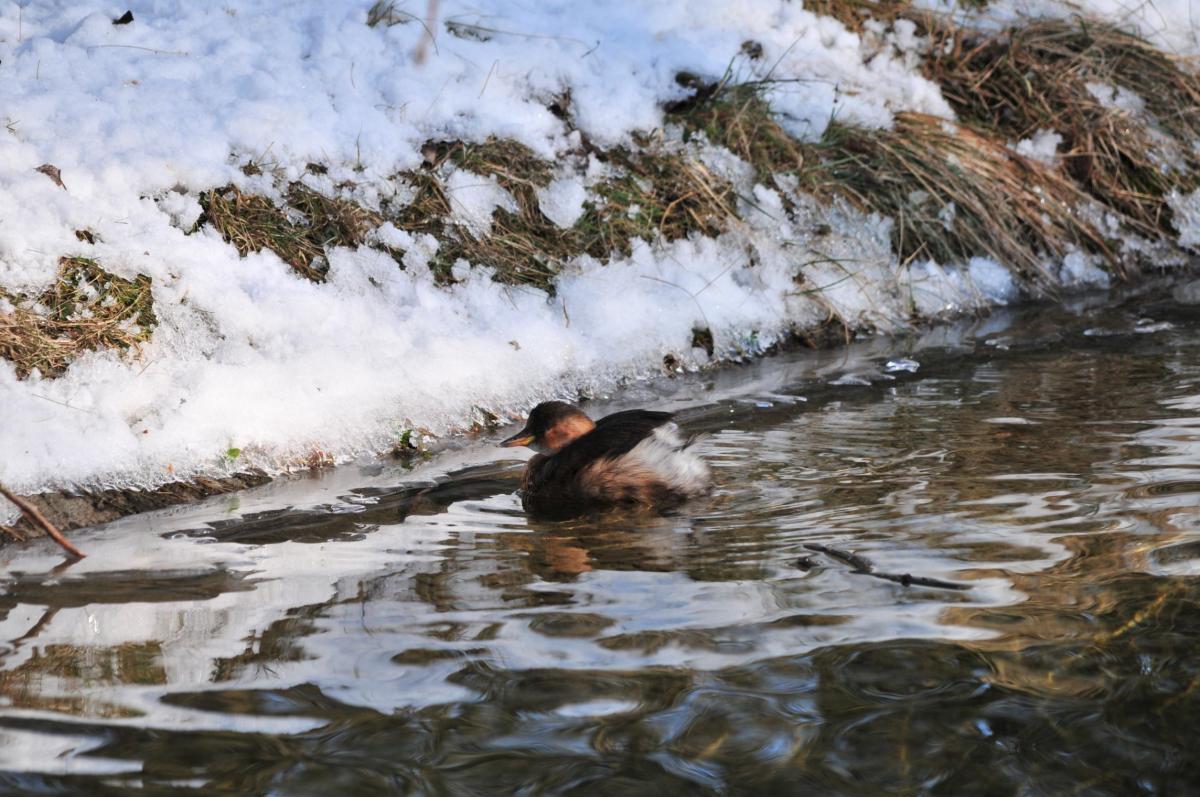 jonge Dodaar in de Amsterdamse waterleiding duinen in een water omgeven door sneeuw en ijs