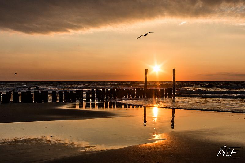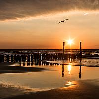 Prachtige zonsondergang op het strand in Domburg. De reflecties en de wolkenpartij maken het plaatje helemaal af.