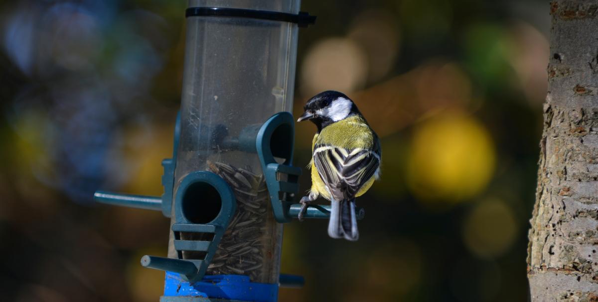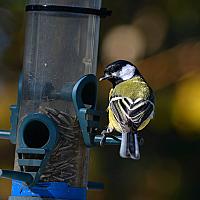 Meesje geniet van de zonnebloempitjes in de tuin en voelt zich bekeken, door iemand met een telelens :)