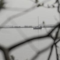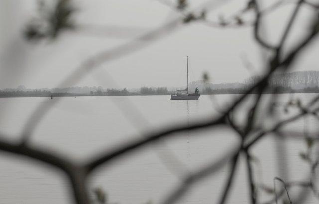 Door de takken heen een bootje op het veluwemeer