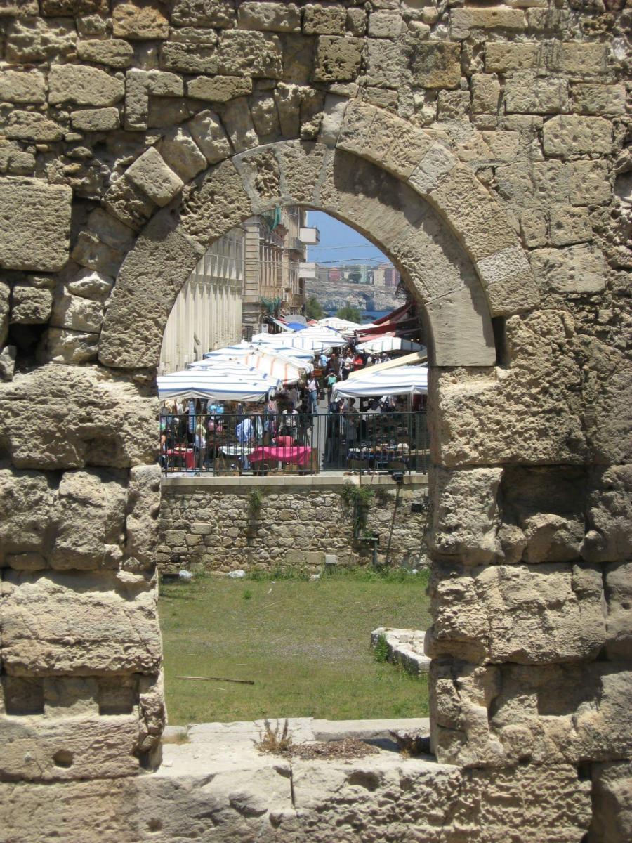 Een van de vele markten in Sicilië Foto genomen door een doorkijkje in een muur