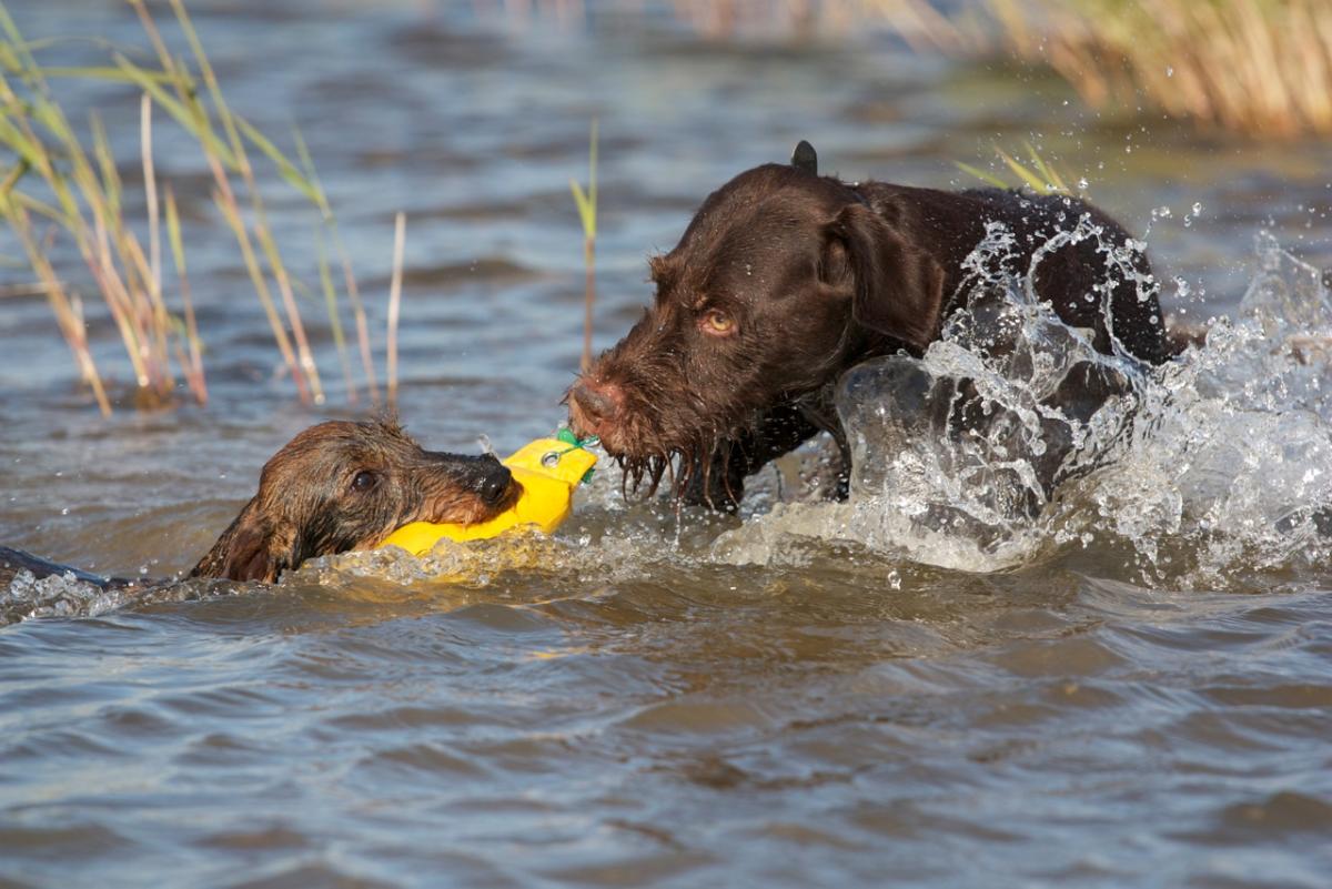 draadhaar leert teckel zwemmen