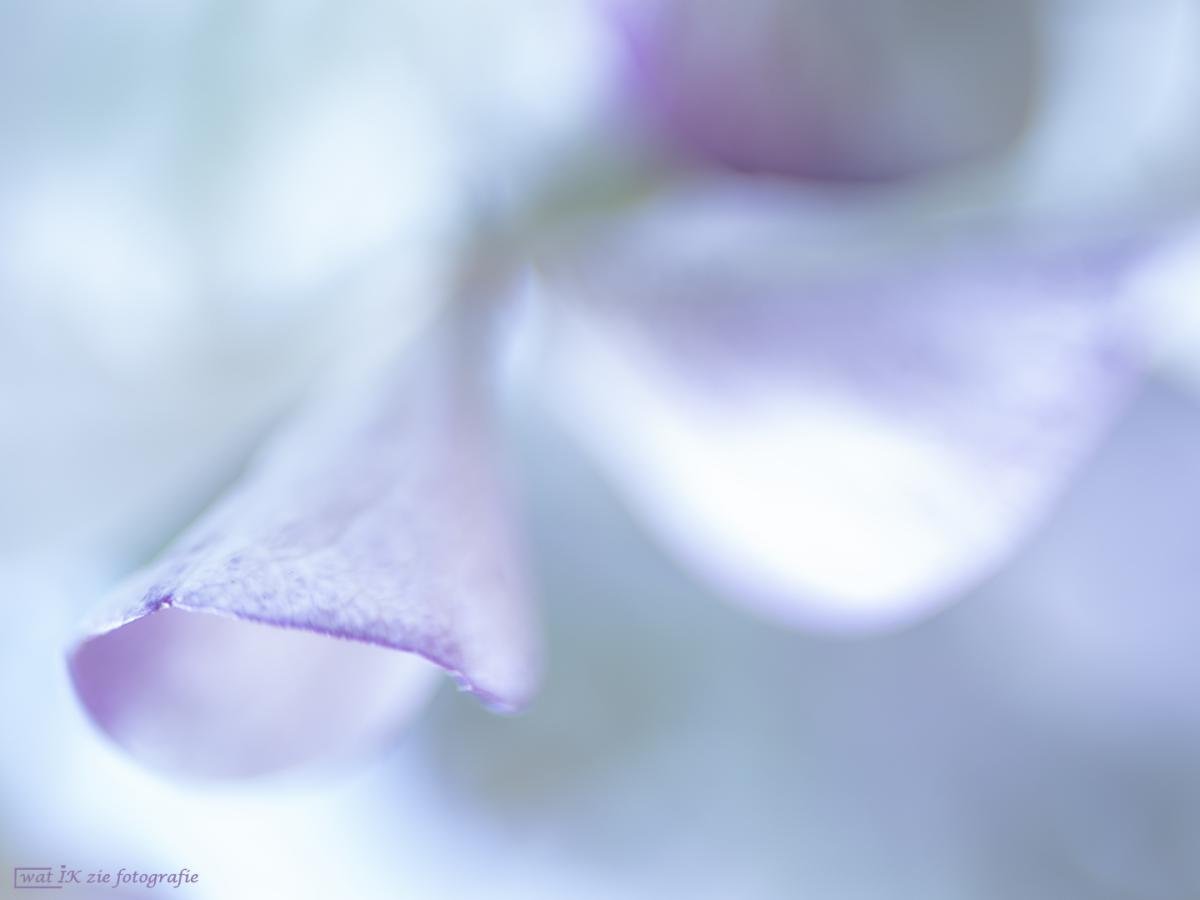 Een gedroogd bloempje van een hortensia, een camera, een lens, een techniek (hier de dubbele belichting)…..meng het geheel door elkaar en er ontstaat een droom in lila tinten.