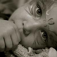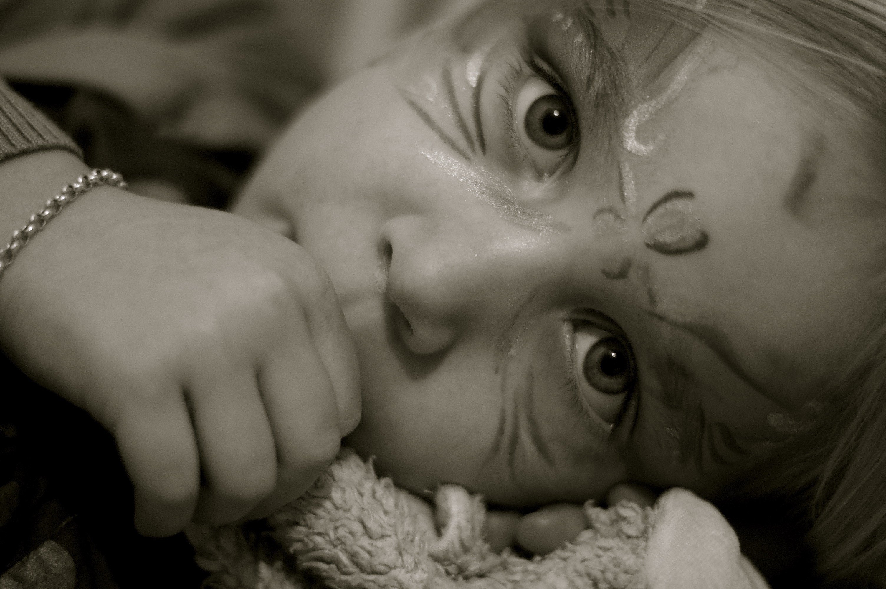 naar deze foto moet ik blijven kijken. Haar hartje slaapt al ... Ik denk dat ik het contrast tussen de dromerige ogen en de levendige schmink mooi vind.