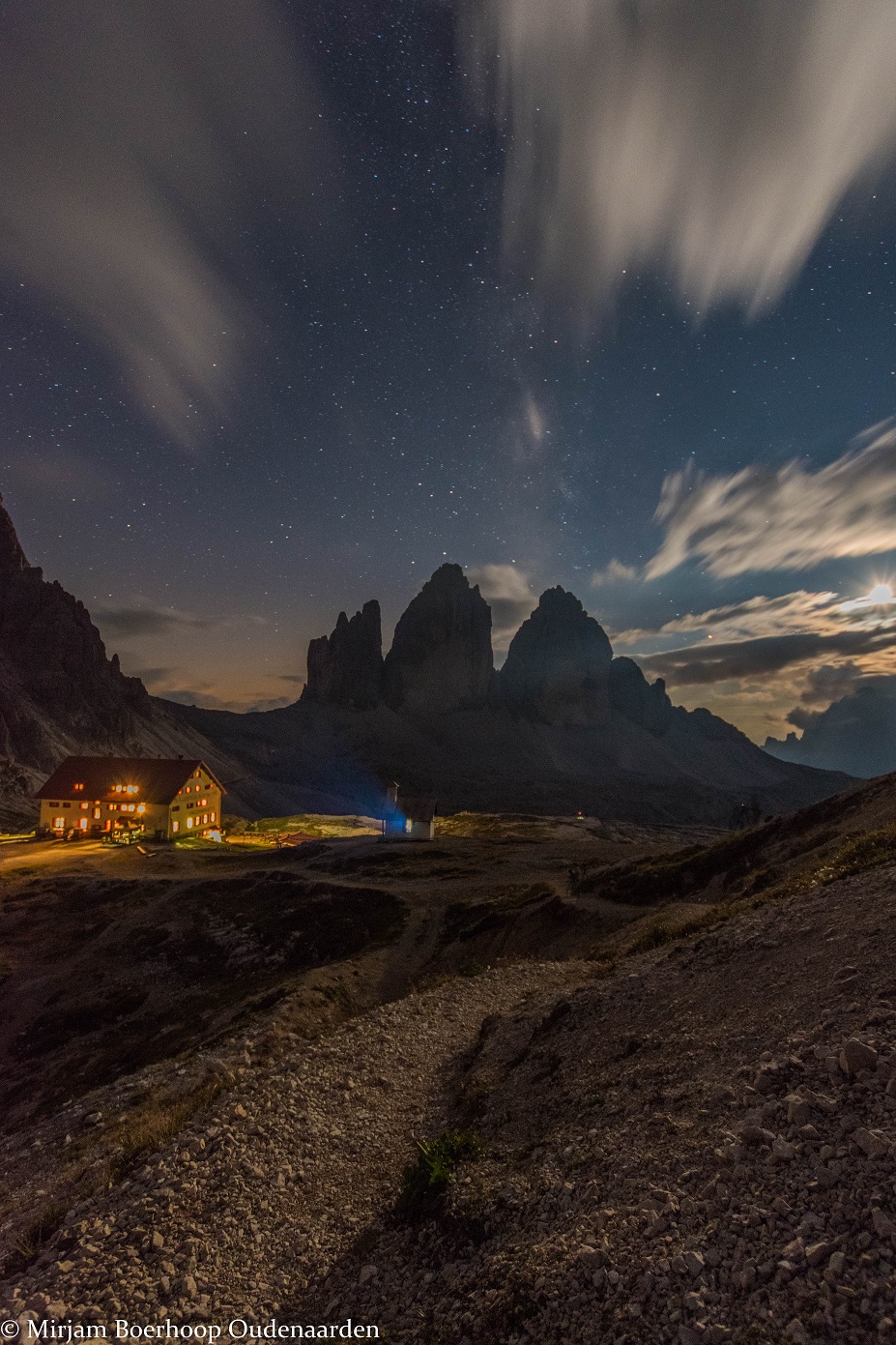 Drei Zinnen in maanlicht