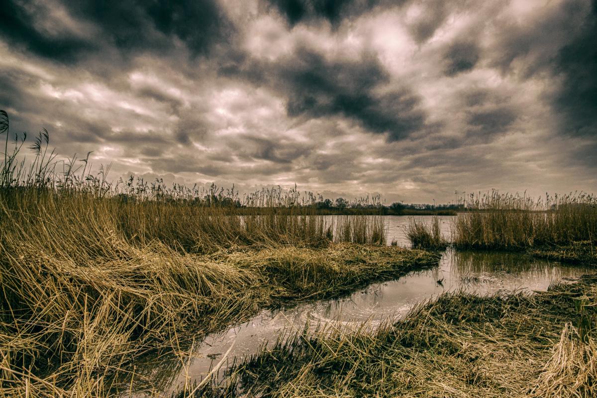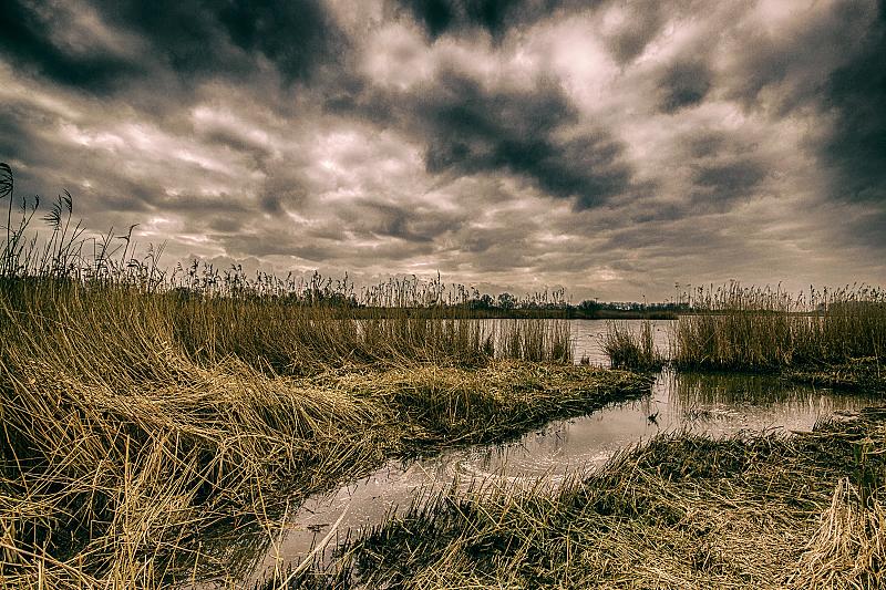 dreigende lucht boven het water van het natuurreservaat De Blankaart - Diksmuide.