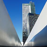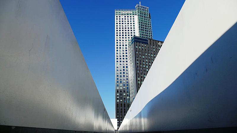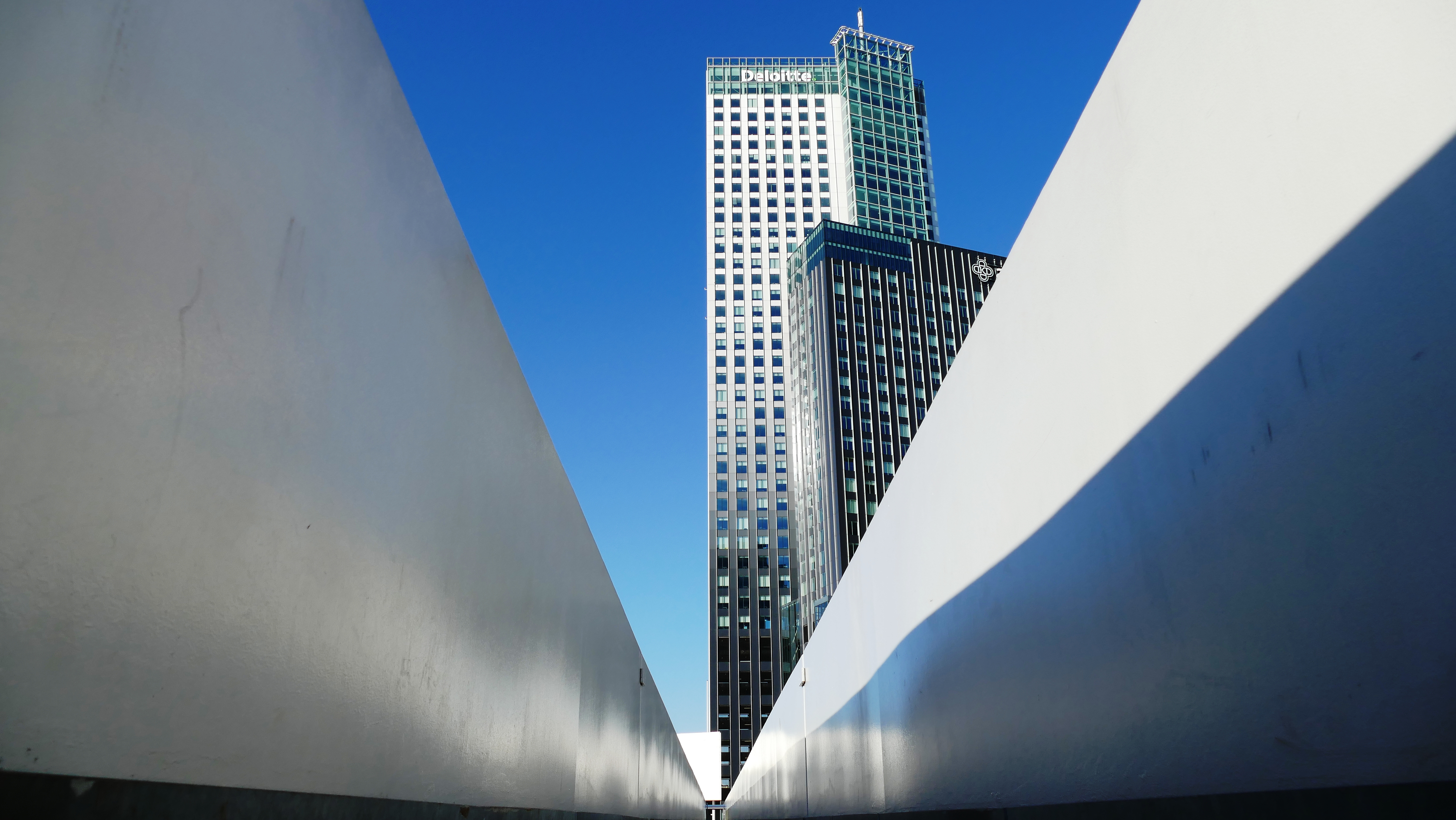 Het Deloitte gebouw in Rotterdam. Genomen liggend op een brug.