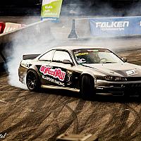 Het is een oude foto van de Nederlands kampioenschap driften.