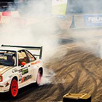 Het is een oude foto van de Nederlands kampioenschap driften.