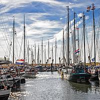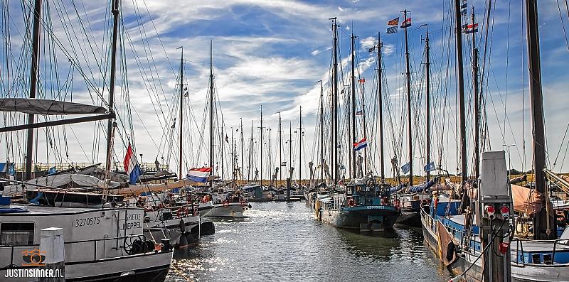 Zomer op Texel, de haven van Oudeschild ligt vol met schepen.