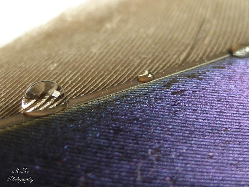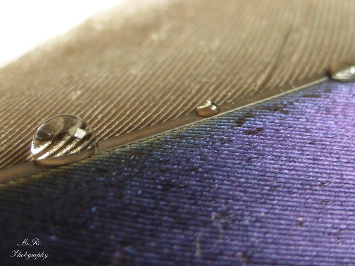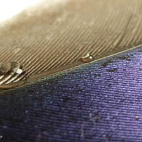 Een macro opname van een druppel op een mooie gekleurde veer.