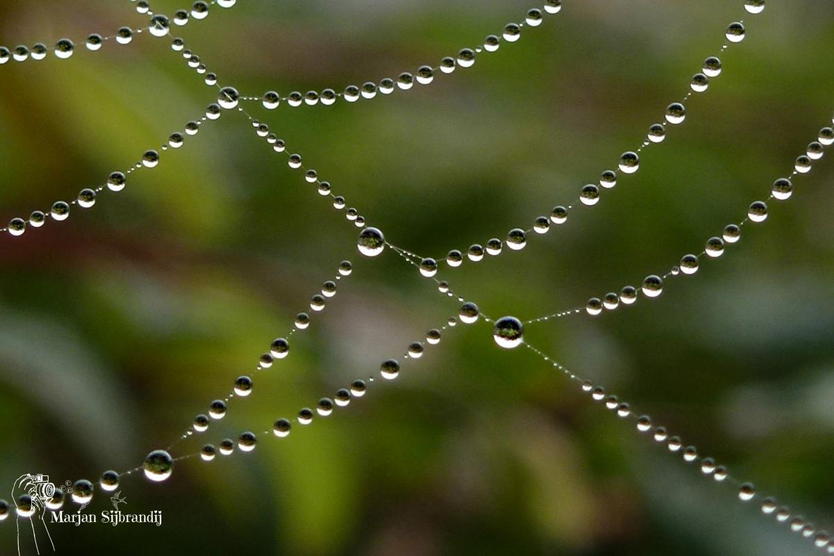 Druppels in een spinnenweb, leuk om te doen maar zeer moeilijk.