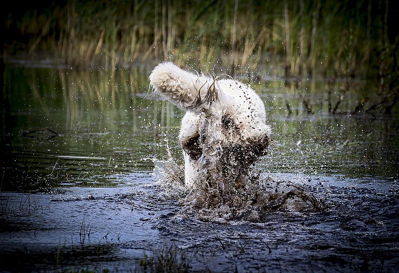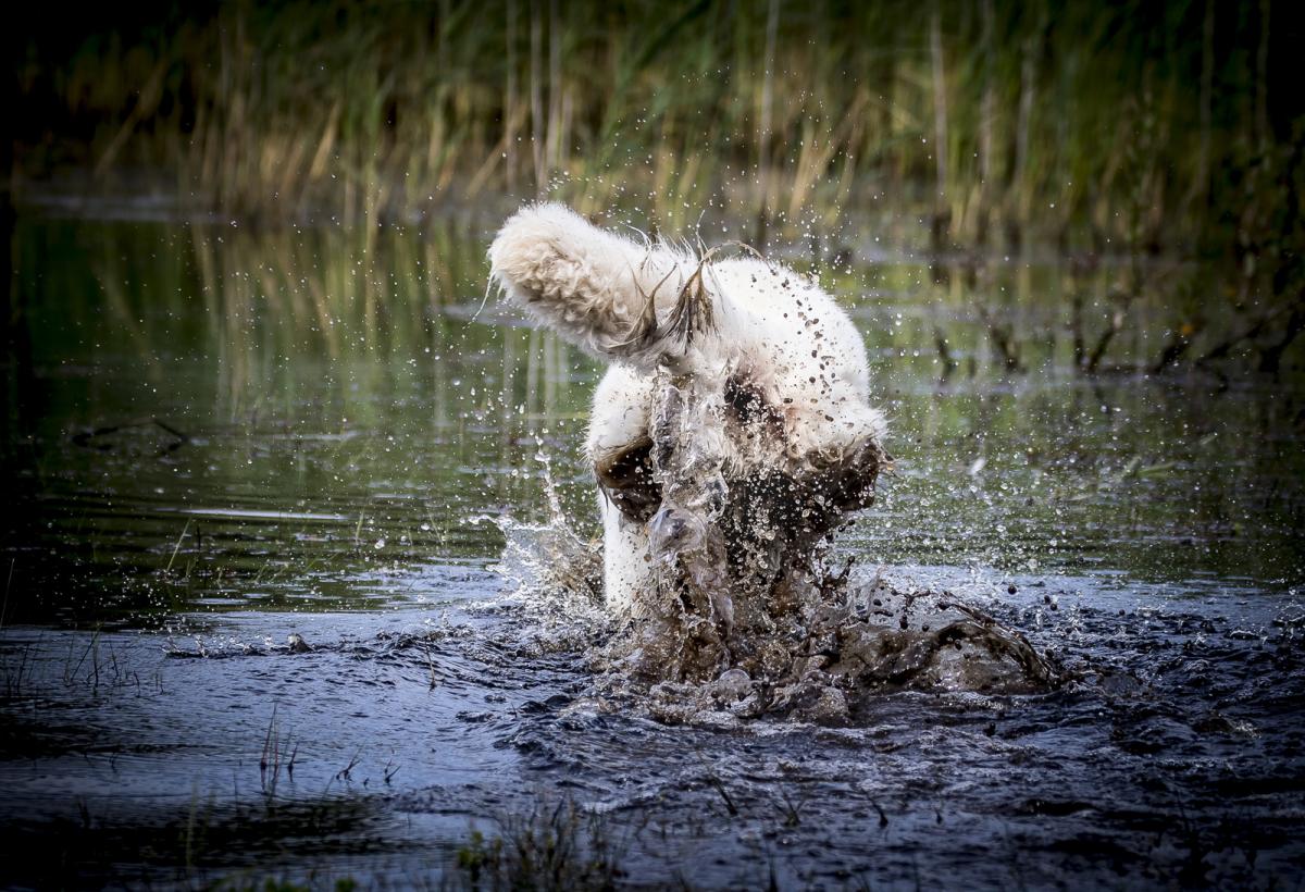 Zwitserse witte herder Lana heeft een bijzondere manier van duiken