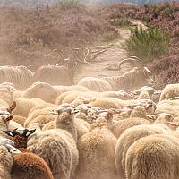 Een schaapskudde op de Posbank die zich met haastige spoed begeven naar een volgend stukje heide om te begrazen. Dit alles onder de bezielende leinding van 2 prachtige bordercollies en een herderin. Heerlijk zoals dat stof opvloog,bijna onhollands net als de Posbank zelf