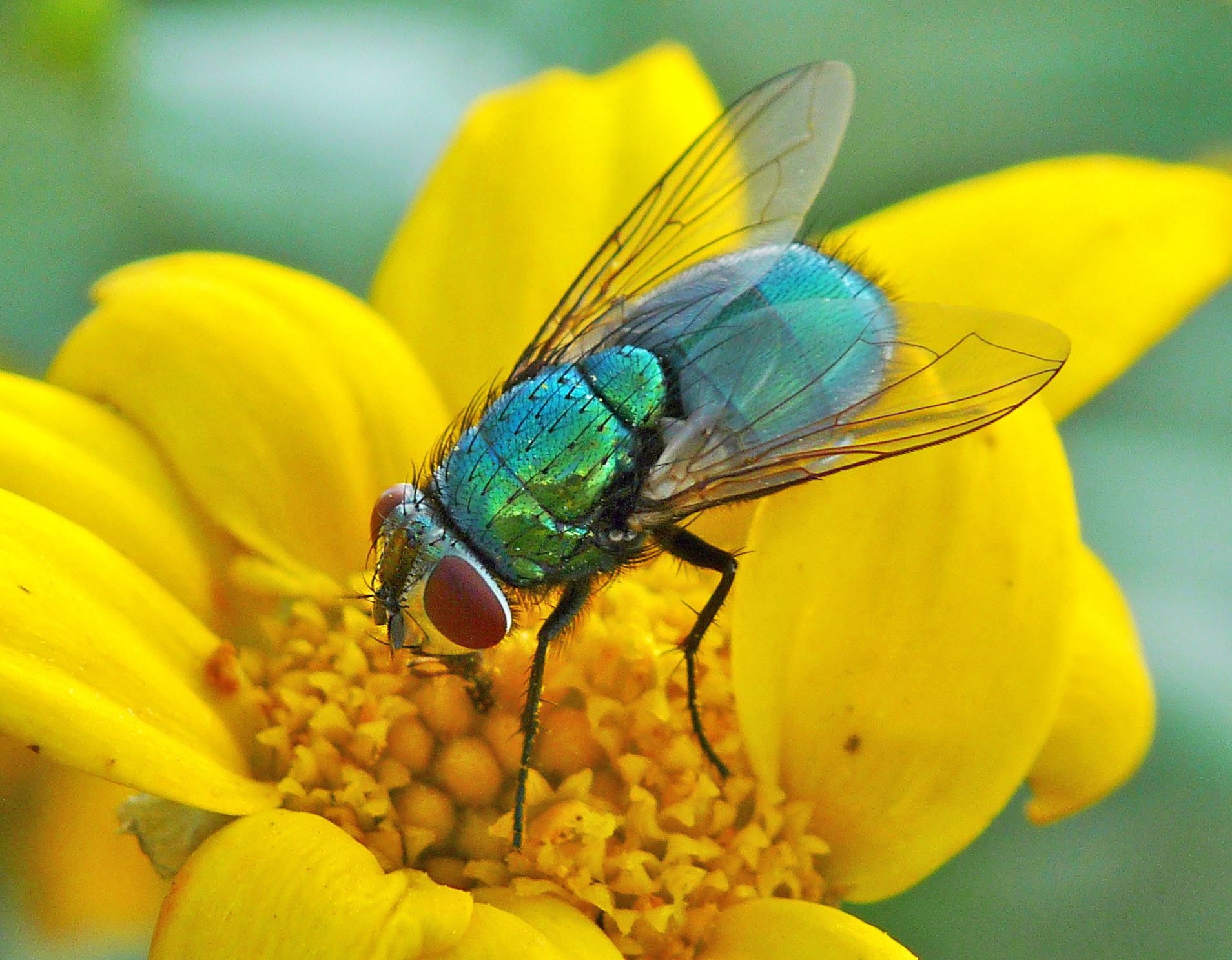 Een blauwe vleesvlieg