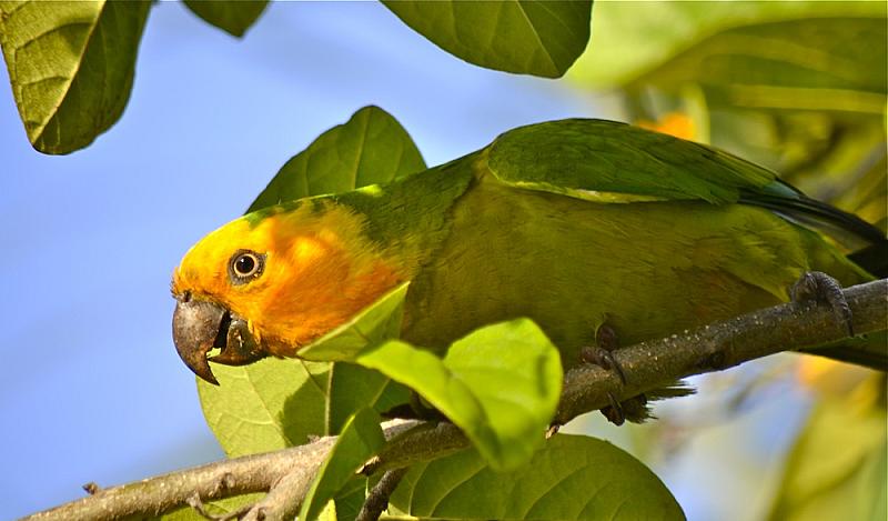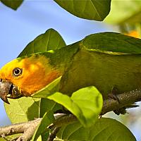 Een geelvleugelamazone papegaai in een boom op Bonaire