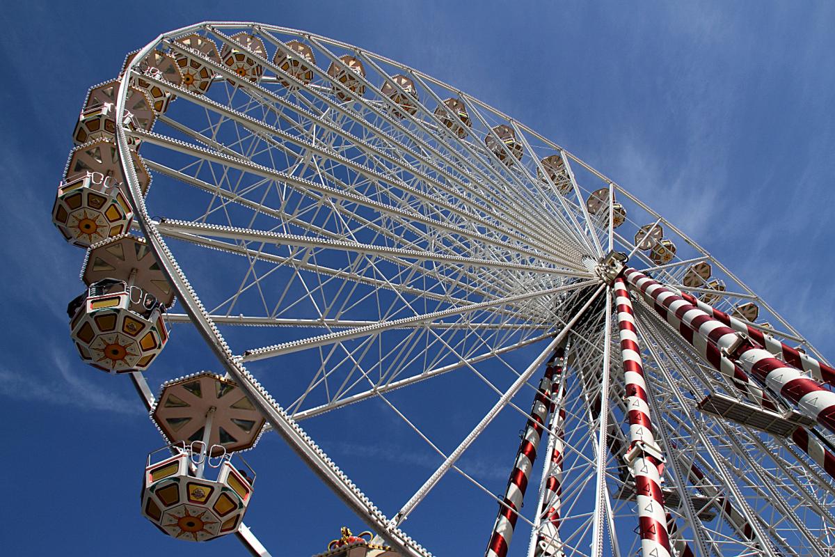 Een groot rad in de zon van Normandie, Caen.
