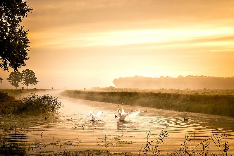 Een mooie mistige zonsopkomst