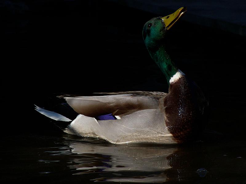 Het was een rustige dag tot er plots eenden in ons vijvertje terecht kwamen. We gaven ze wat brood en ik had natuurlijk mijn camera er bij. De foto werd precies genomen toen de eend een broodje wilde vangen.