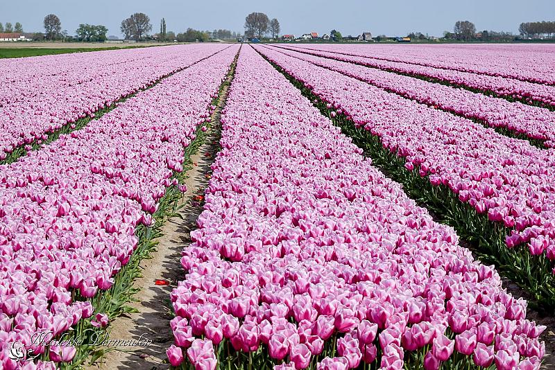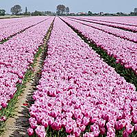 Een tulpenveld in bloei op Goeree-Overflakkee