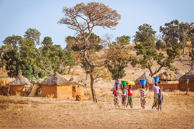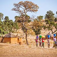 Ngaoundéré, Kameroen. Elke dag wandelen deze kinderen al zingend naar de waterput die zich een kilometer verder bevindt.